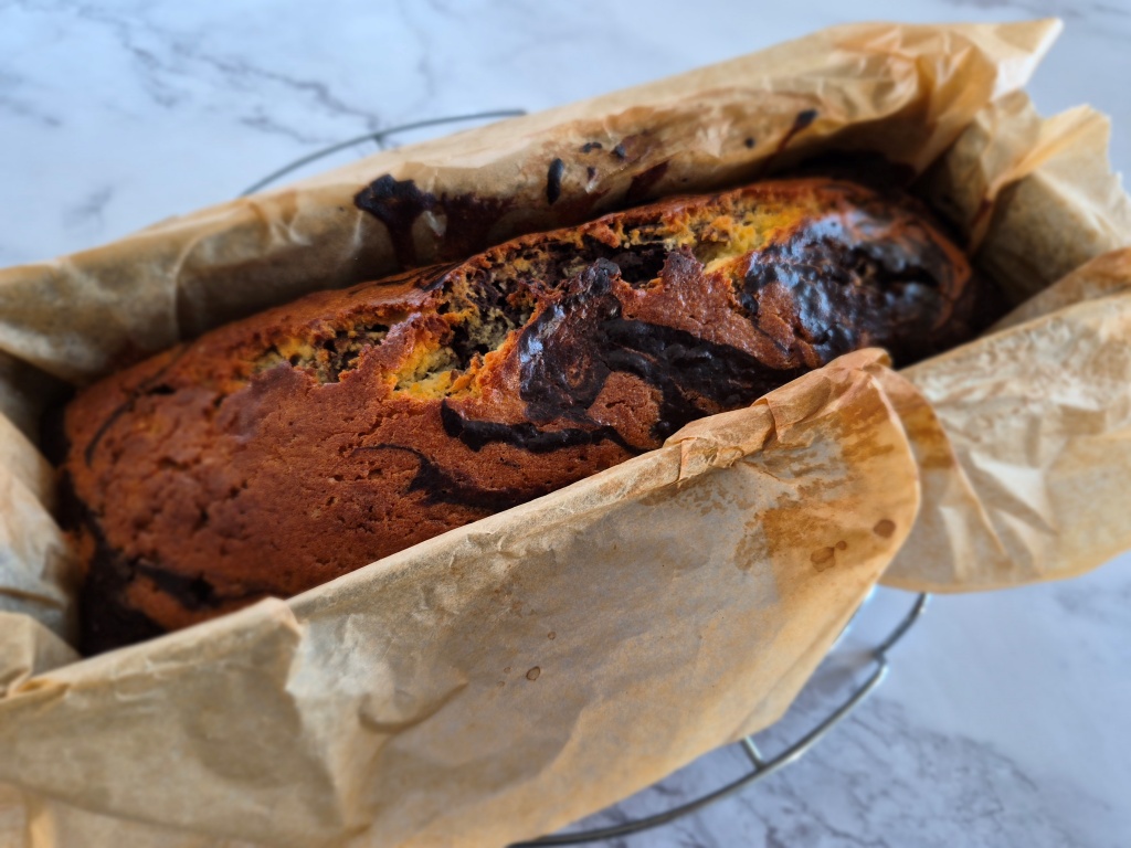 Unite le uova intere, e incorporare gradualmente la farina, vaniglia, lievito e zucca d'arancia.Dividete l'impasto in due parti in due ciotole separate, e ad una parte incorporate il cacao in polvere e il latte.